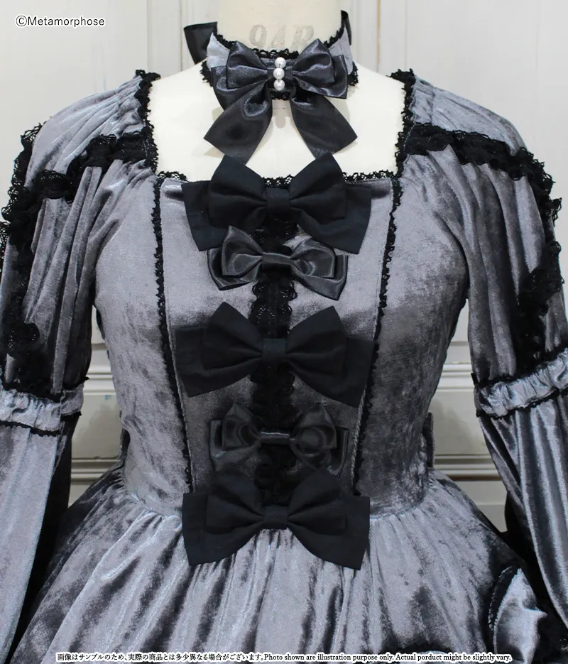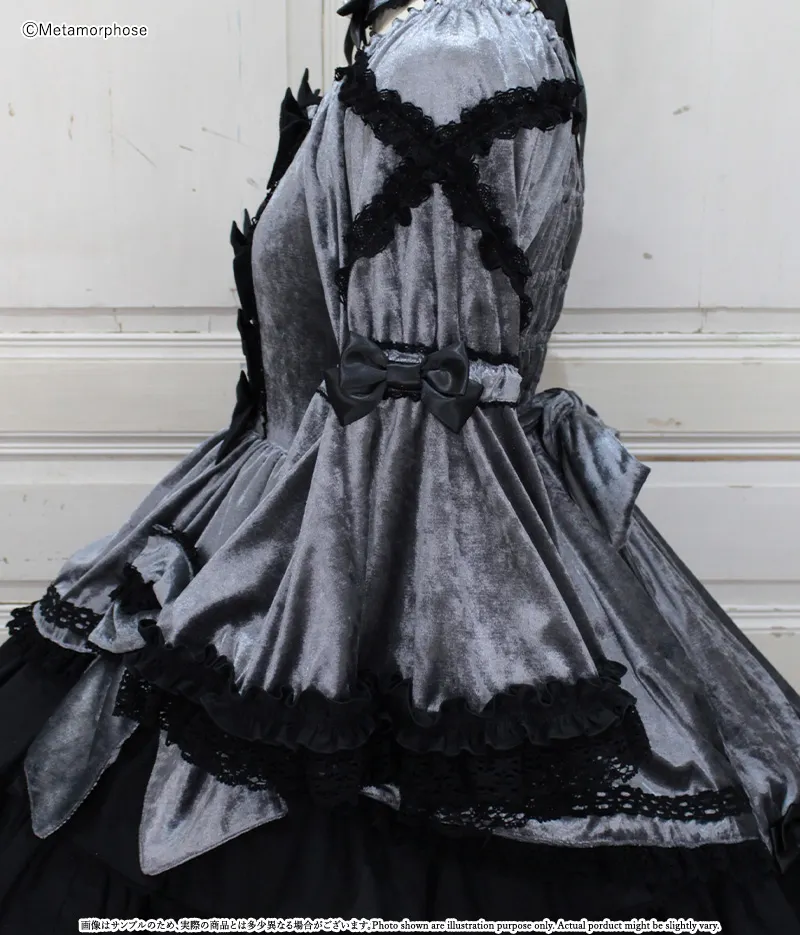 グレー×黒別布×黒レース×黒リボン×黒カメオ